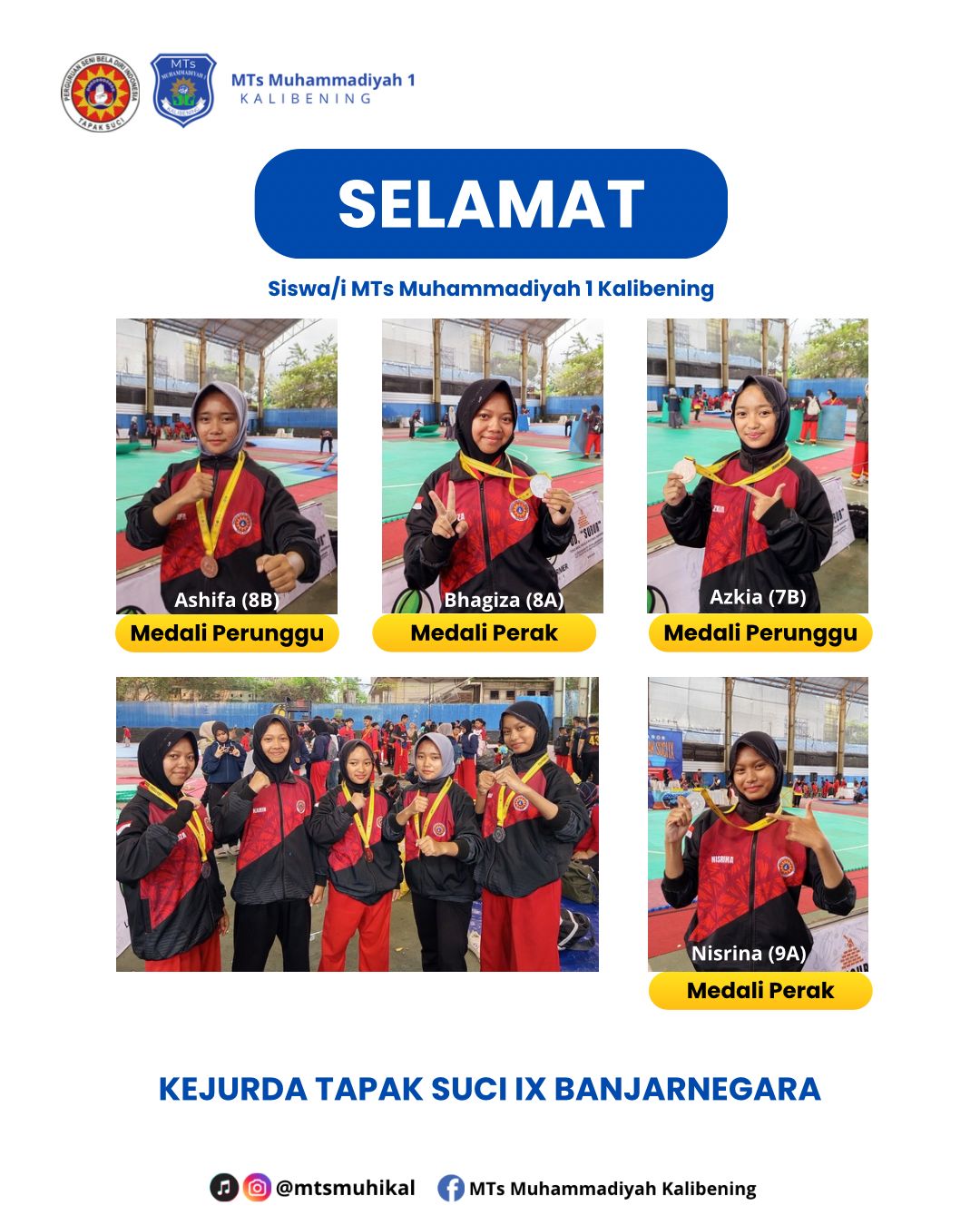 Dengan hasil ini, MTs Muhammadiyah 1 Kalibening semakin mengukuhkan posisinya sebagai salah satu sekolah yang aktif dalam melestarikan budaya bangsa melalui olahraga pencak silat, sekaligus mencetak generasi muda yang sehat, disiplin, dan bermental juara.